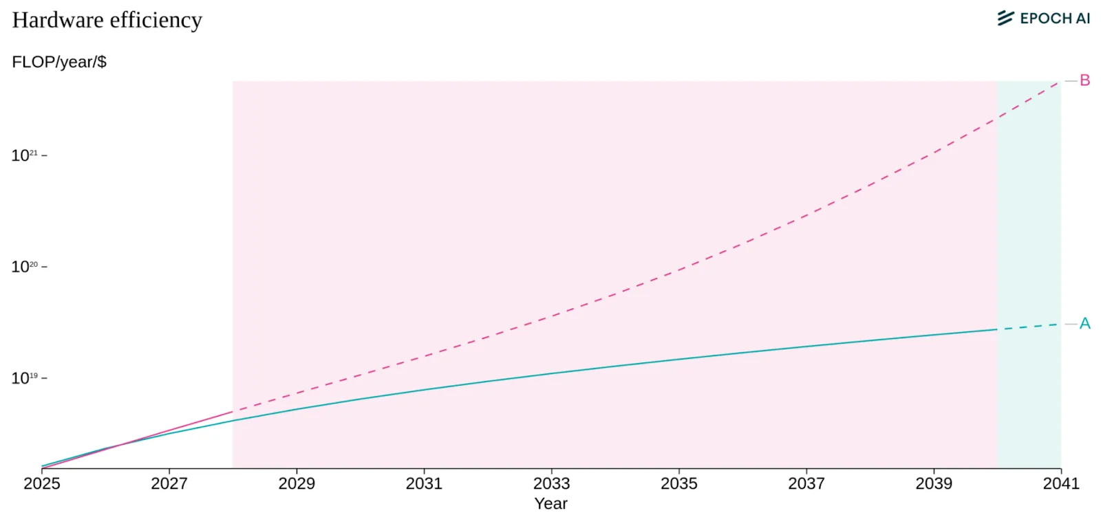 In the near future this trend seems likely to continue, but thermodynamic limits will eventually stop this trend. Chips can only get so energy-efficient before physics says “no”. Every computation generates heat as a fundamental law of physics, not an engineering problem. Current analysis suggests there is room for a 50 to 1,000× improvement in energy efficiency before we hit fundamental CMOS limits, with a 50% chance that improvements cease before a roughly 200× improvement on existing technology. These estimates suggest that CMOS processors are likely sufficiently efficient to power substantially larger AI training runs than today. 7 This implies we have significant headroom to scale using current silicon paradigms through 2030 and beyond, although hardware R&D returns may eventually diminish as we approach physical limits. Beyond these limits, training runs would likely require radical changes to computing paradigms, like a shift to adiabatic computing (Ho et al., 2023; Sevilla et al., 2024).