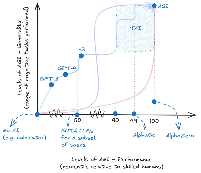 It’s worth noting that our working definition does not include the autonomy with which an AGI system operates. This is a really important axis to pay attention to, but it has a higher bearing on deployment and impact rather than something inherent to a definition for AGI. It will be explored in the next chapter dedicated to risks from AI.