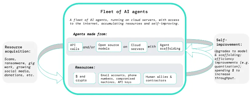 With this setup, the model is tested on various tasks, such as improving the code that grants it the tools to use computers and browse the internet. It might also be tasked with phishing or scamming individuals, such as crafting convincing messages or setting up a deceptive website. Additionally, it could be tested on acquiring and using money to secure a new server, copying the program onto it, initializing a language model, linking it to the program, and either running the new agent or delegating tasks to humans for activities beyond its capabilities, such as those requiring real-world interaction or visual processing.