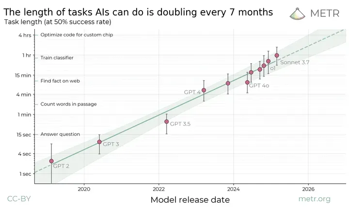 Sustained task execution represents an AI system's ability to maintain coherence and goal-directed behavior over extended periods. This capability measures how long an AI can successfully complete complex tasks that require multiple steps, managing resources, handling errors, and adapting to feedback along the way. In this section we focus on the raw ability to keep working effectively toward any goal over time, regardless of whether that goal was internally chosen or externally provided (Kwa et al., 2025). It's uniquely difficult to evaluate long-term planning because its effects may only become apparent over extended time periods.