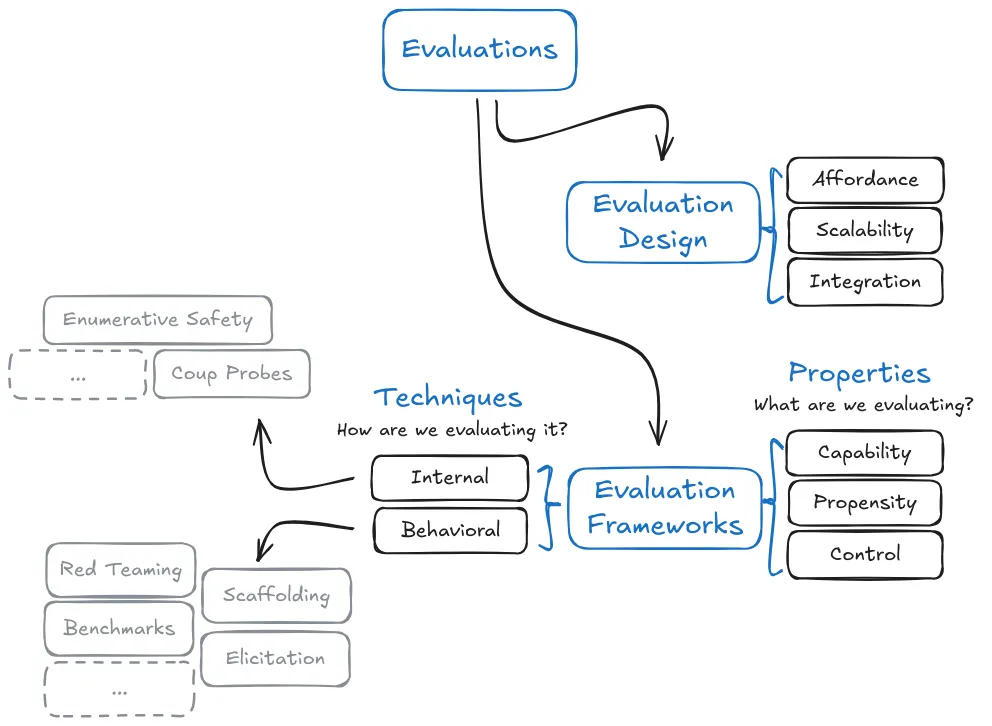 Effective safety assessment requires measuring three distinct properties: capabilities, propensities, and control. Dangerous capabilities evaluations establish upper bounds on what models can do when pushed to their limits through techniques like scaffolding and tool-augmentation. Propensity evaluations reveal what behaviors models tend to exhibit by default, measuring behavioral tendencies rather than just maximum abilities. Control evaluations verify whether safety protocols remain effective when models actively try to circumvent them. This three-part taxonomy provides a systematic framework for safety measurement that helps answer the most decision-relevant questions about AI.
