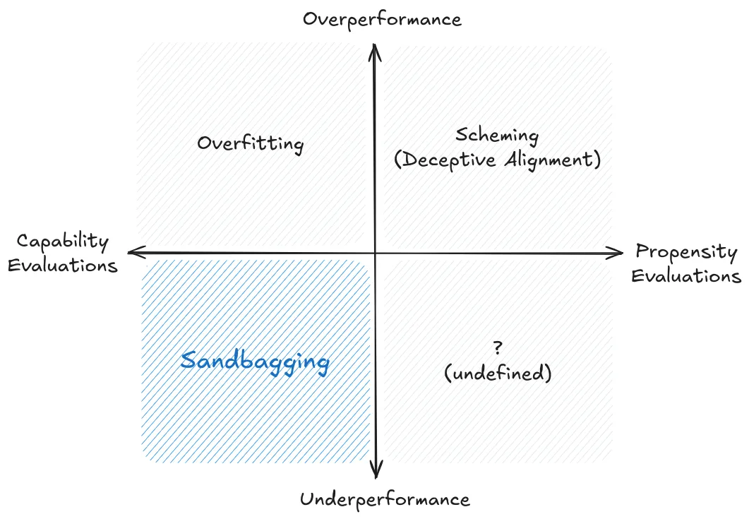 Sandbagging refers to strategic underperformance on evaluations, where an AI system is intentionally made to appear less capable than it actually is. There are concerns about AI systems themselves choosing to sandbag, independent of developer intentions. An AI system might deliberately hide its capabilities to avoid modifications or restrictions that would prevent it from achieving its goals (Hubinger, 2023). We talked more about why this is a concern in the subsection on scheming. As evidence that is is possible, multiple frontier models including Claude 3.5 Sonnet, Claude 3 Opus, and OpenAI's o1 have been shown to be capable of sandbagging behavior. They deliberately underperformed on arithmetic tasks when they believed that high performance would trigger model unlearning[^footnote_in_context_sandbagging] (Meinke et al., 2025).