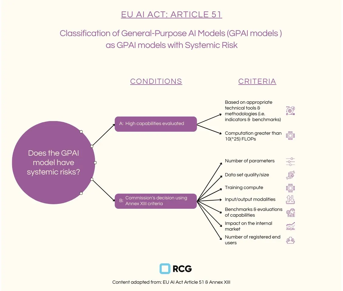 What additional requirements exist for high-risk and systemic risk AI systems? For GPAI models presenting systemic risks, identified either by surpassing a computational threshold ( FLOPs) or based on potential impact criteria (such as scalability and risk of large-scale harm), additional obligations apply. Providers must conduct adversarial testing, track and report serious incidents, implement strong cybersecurity measures, and proactively mitigate systemic risks. The European AI Office facilitated the drafting of a General-Purpose AI Code of Practice, completed in April 2025, providing a central tool for GPAI model providers to comply with the Act's requirements. While compliance through this Code is voluntary, it offers providers a clear practical pathway to demonstrate adherence.