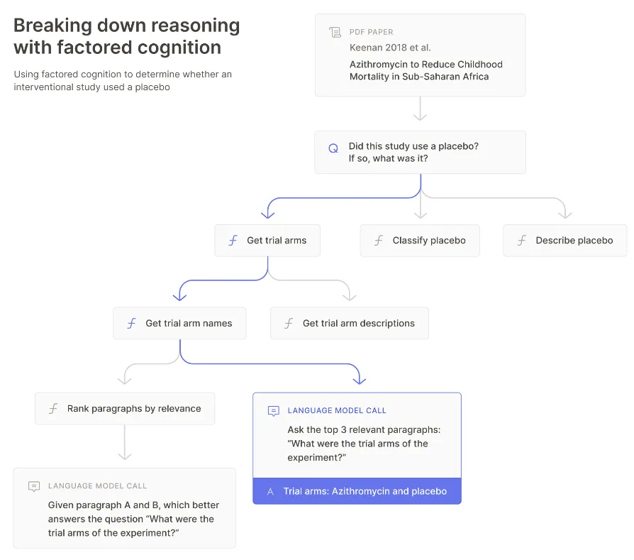 What is Factored Cognition? Factored cognition is a way to help machine learning (ML ) models replicate human thinking (cognition) by breaking down complex cognitive tasks into smaller subtasks. It leverages this principle of overcoming complexity by decomposing a problem into smaller subproblems that are easier to solve.