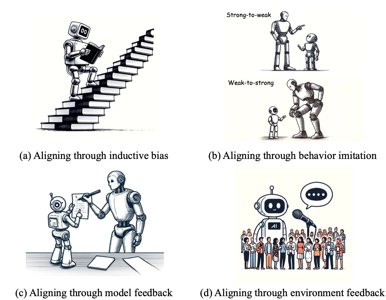 This section discusses yet more attempts to address the reward misspecification problem. At times, the intended behavior is so intricate that demonstration-based learning becomes untenable. An alternative approach is to offer feedback to the agent instead of providing either manually specified reward functions or even expert demonstrations. This section delves into feedback-based strategies such as Reward Modeling, Reinforcement Learning from Human Feedback (RLHF) and Reinforcement Learning from AI Feedback (RLAIF), also known as Reinforcement Learning from Constitutional AI (RLCAI) or simply Constitutional AI.