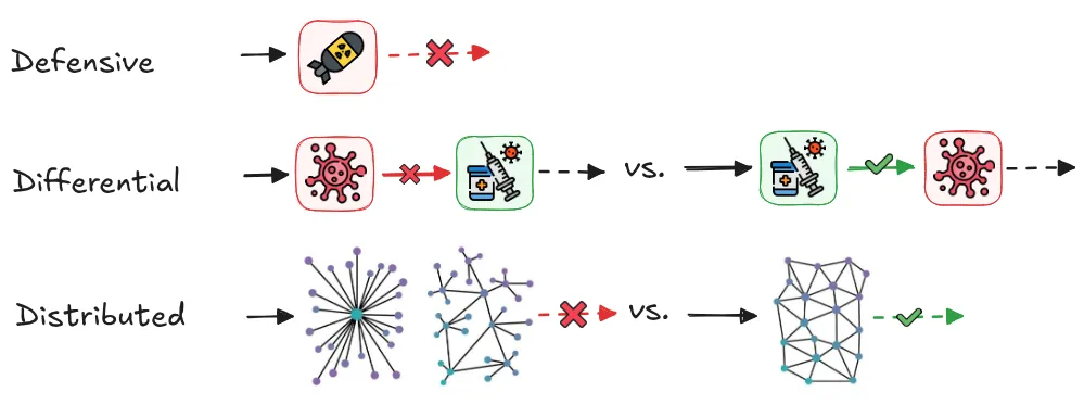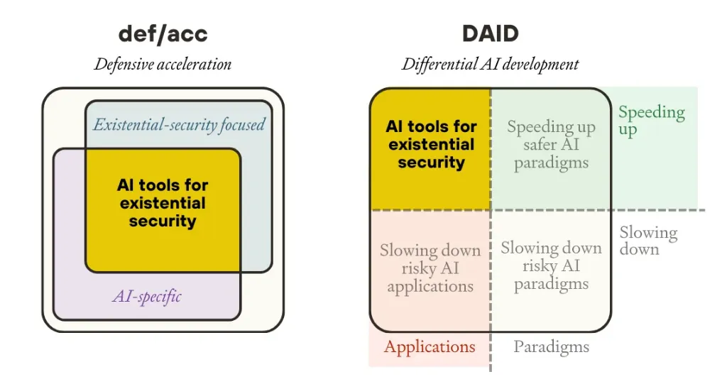 Defense acceleration (d/acc) is a strategic philosophy of prioritizing technologies that strengthen defense and social resilience against AI risks. Defense-in-depth is a philosophy that shows both how and why we can layer multiple defensive layers. Defensive acceleration is a parallel philosophy that we can use in addition to DiD. It proposes actively accelerating technologies that inherently favor defense over offense, thereby making society more resilient to various threats. D/acc emerged as a strategic approach in 2023 as a middle path between unrestricted acceleration (effective accelerationism (e/acc)) and techno pessimists/doomers (Buterin, 2023; Buterin, 2025).