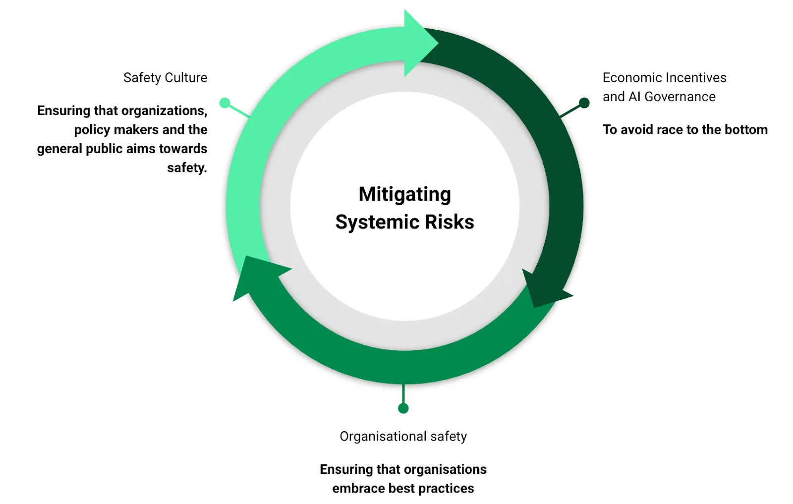 AI safety is fundamentally a socio-technical problem requiring socio-technical solutions. Technical safety measures can be undermined by inadequate governance, poor security practices within labs, or cultures that prioritize speed over caution. Ensuring safety requires robust systemic approaches - governance structures, organizational practices, and cultural norms that shape how AI gets developed and deployed. Addressing these systemic risks is difficult precisely because responsibility is distributed: no single actor controls all the variables, and solutions require coordinating across companies, governments, researchers, and civil society.